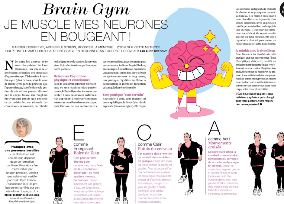 Retrouvez l'article complet : Article Brain Gym Femme Actuelle Mars 26